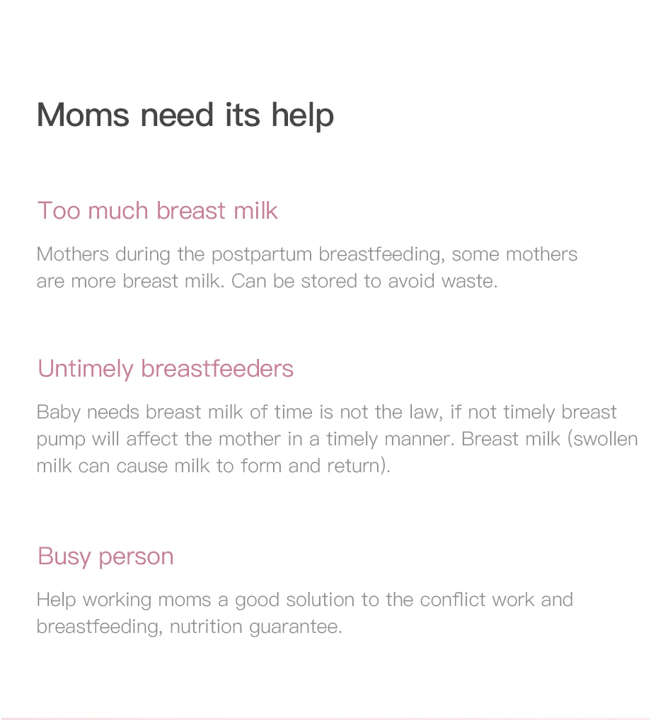 Detecção de temperatura-esta característica é o maior destaque do produto, mum não precisa medir a temperatura que detecta através do saco de armazenamento de leite para saber se a temperatura é adequada.